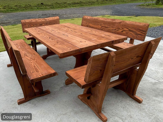 Vönduð tréútihúsgögn úr harðviði í skandinavískum stíl – handsmíðuð úr Douglasgreni eða eik